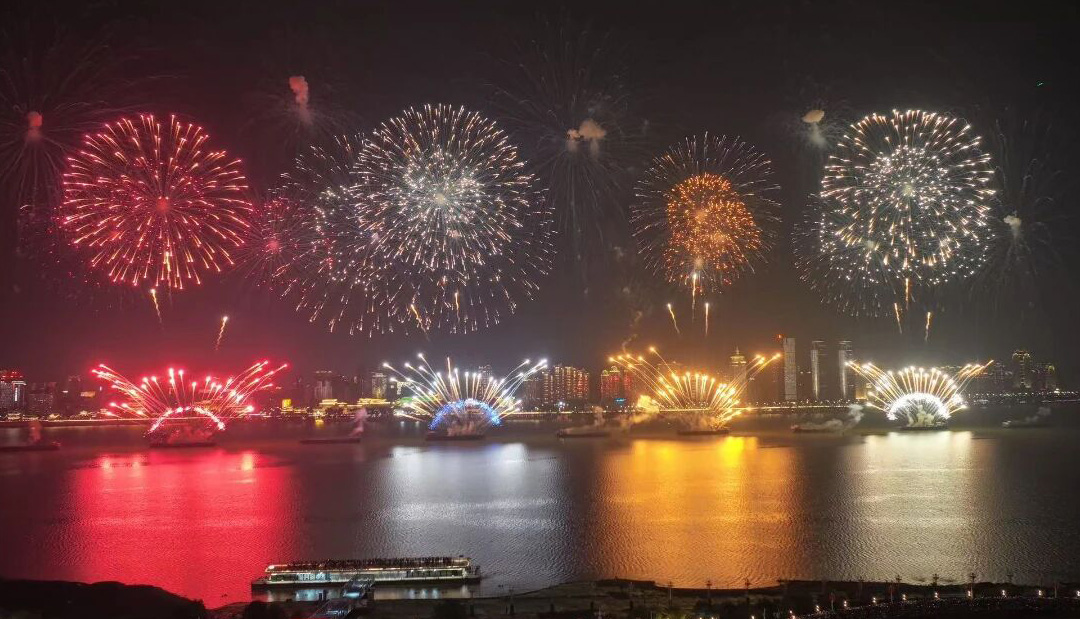 “Ancient Silver, Revolutionary Red, Modern Blue, Future Gold” Four-color themed fireworks echoed the four major themes. Over 50,000 fireworks launched into the night sky of the Hero City. Each burst of fireworks seemed to burst with passion. Every frame was a visual shock. The night sky was transformed into a dreamlike canvas, unleashing the unique romance of Nanchang.